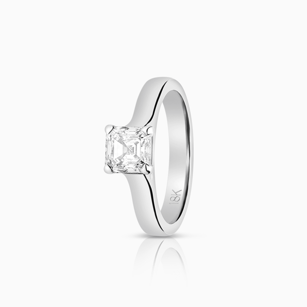 Solitärring Asscher 0,90ct 18K vitguld GIA certifikat